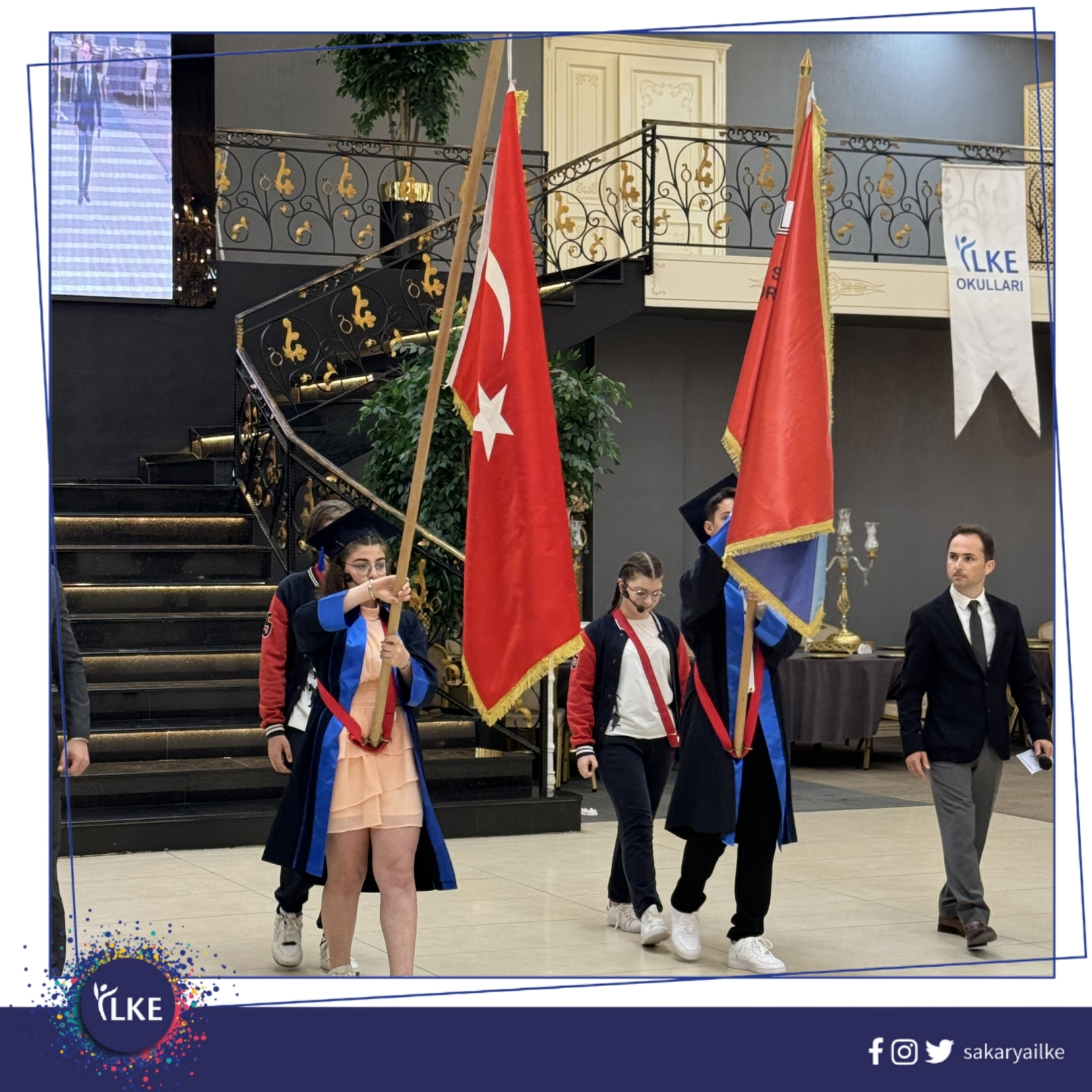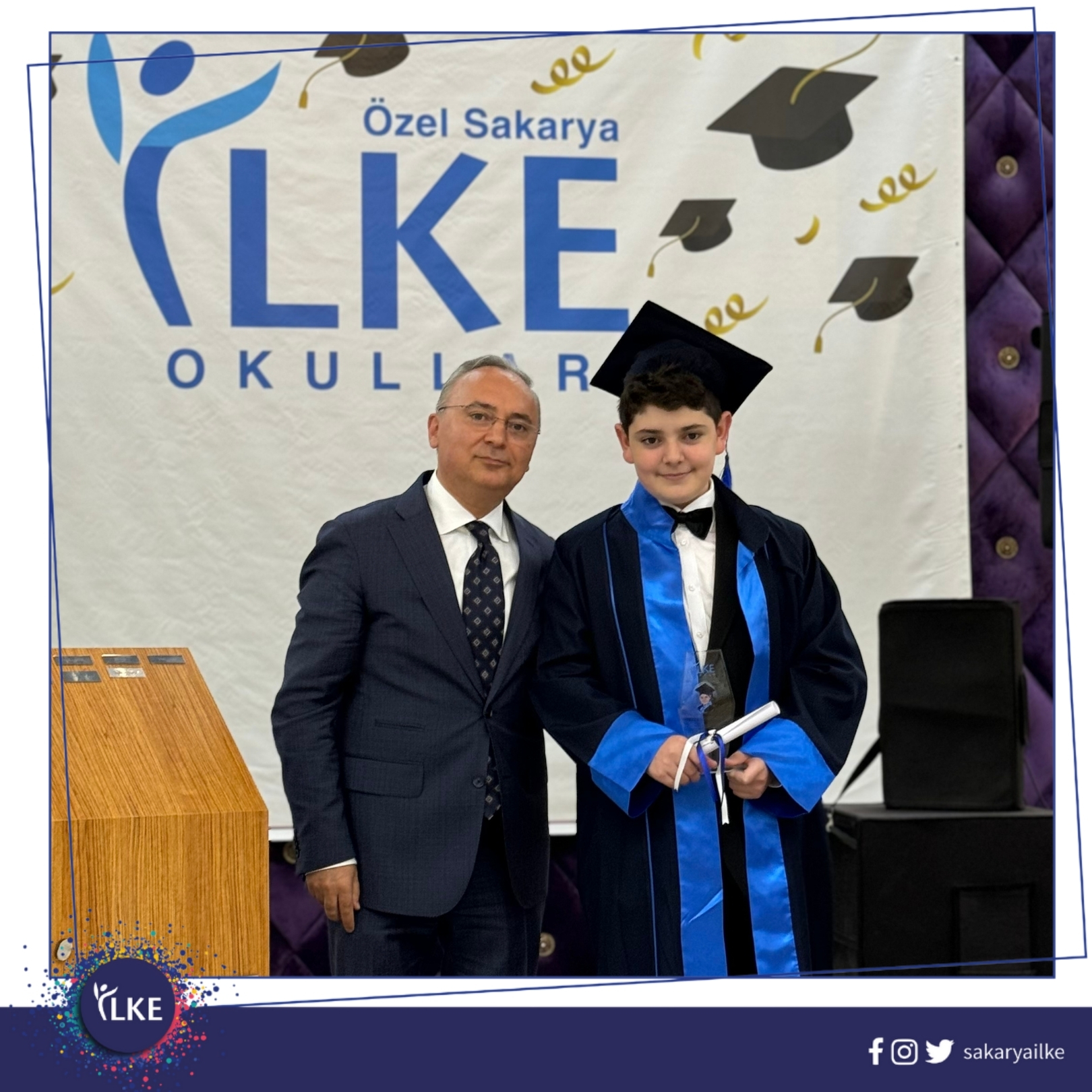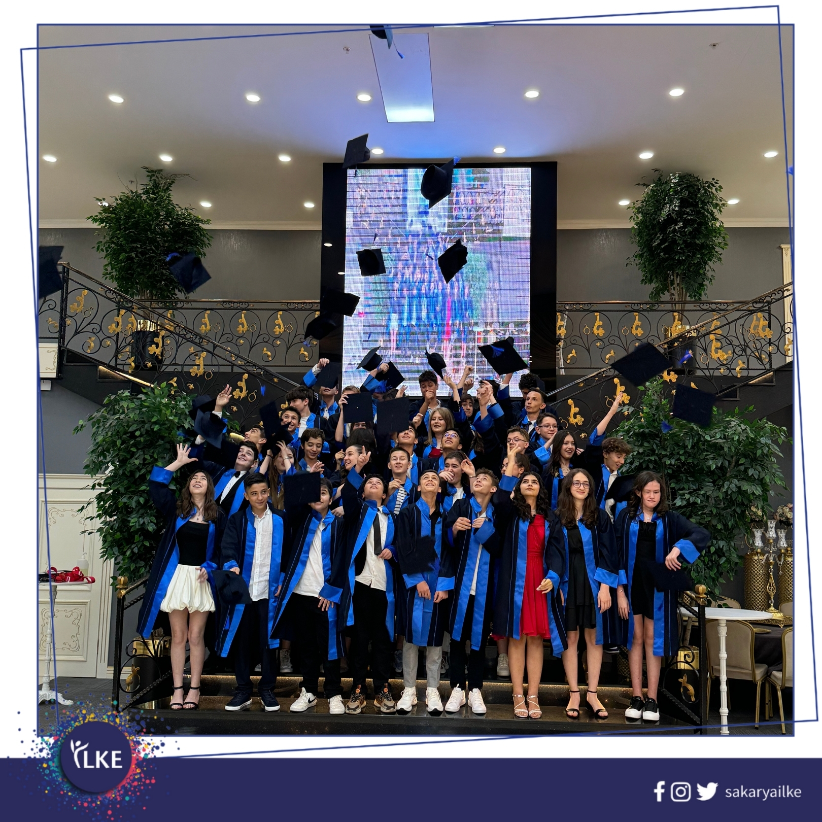 Okulumuzun 9. Dönem Mezuniyet Töreni, velilerimizin de katılımıyla gerçekleşti. Öğrencilerimizi 8. sınıftan mezun etmenin coşkusunu hep birlikte yaşadık. Eğitim hayatlarında yeni bir döneme doğru yol alan öğrencilerimiz, ögretmenleri ve velileri ile keyif