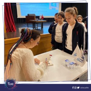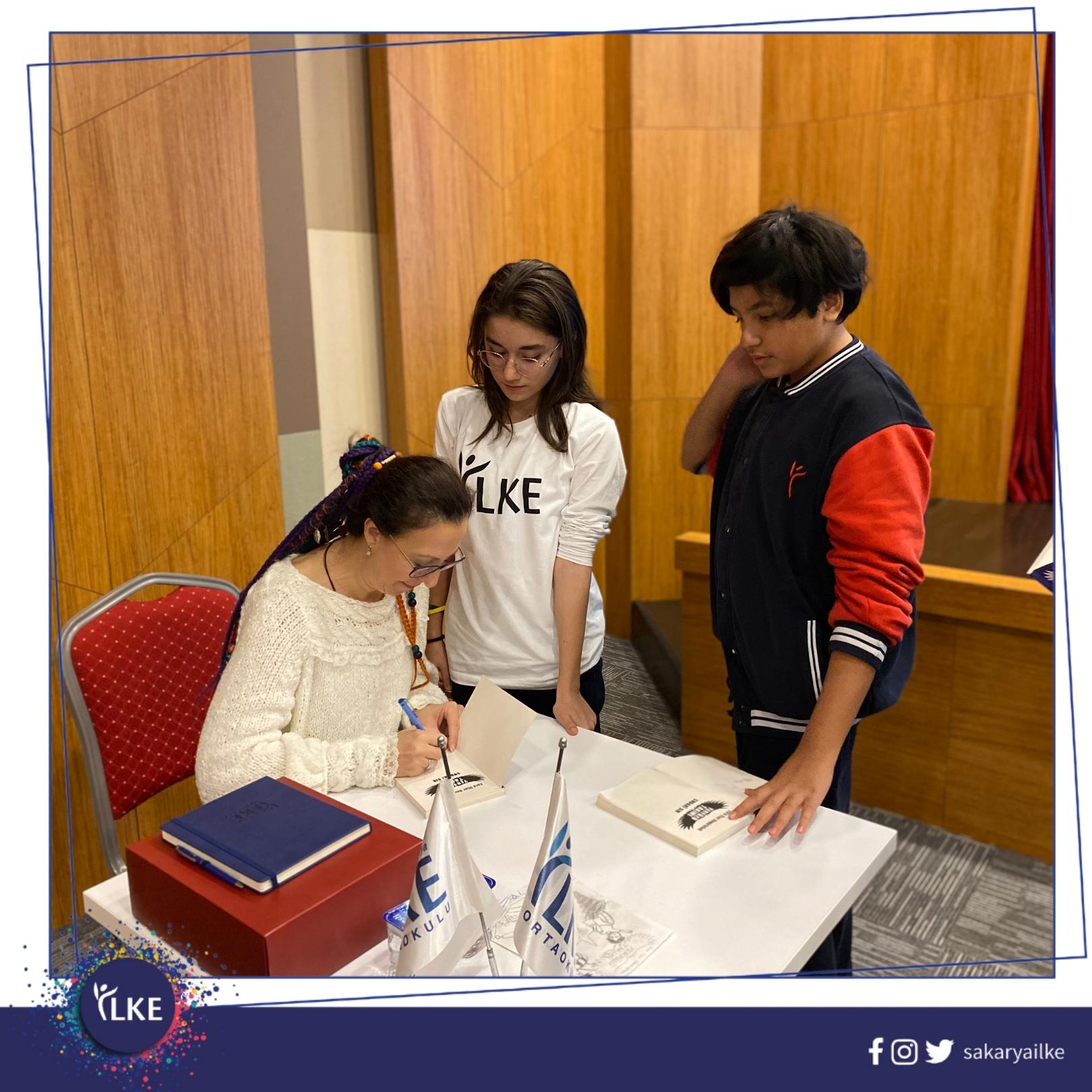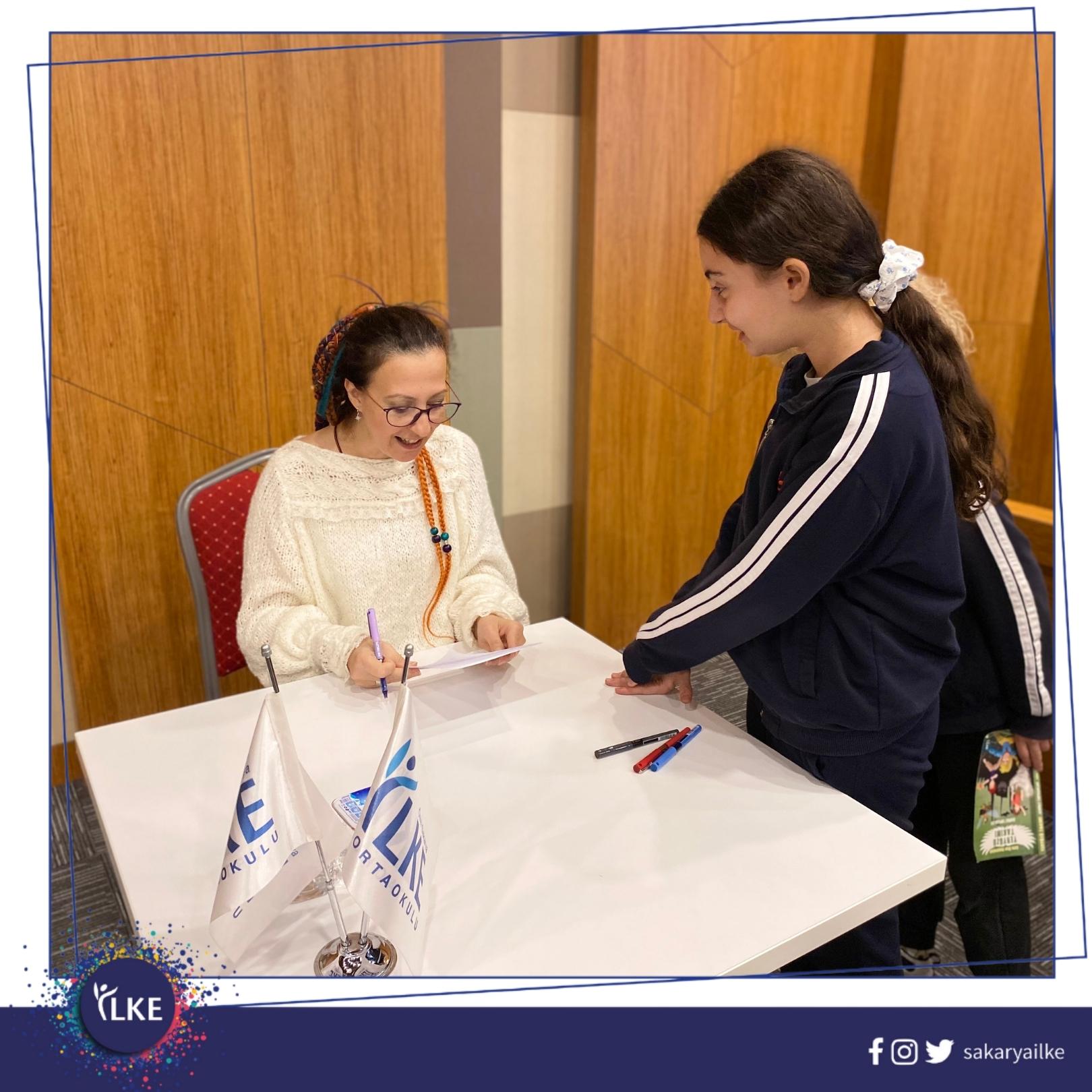 5,6 ve 7. sınıf öğrencilerimiz, okudukları “Yeryüzü Takımı” serisinin yazarı Esra İlter Demirbilek ile kitap söyleşisinde bir araya geldi. Kitaplarını imzalatma imkânı bulan öğrencilerimiz, kitap ile ilgili merak ettiği soruları yazarımıza yönelterek keyifli bir söyleşi geçirdiler. Bu keyifli söyleşi için Yazar Esra İlter Demirbilek’e teşekkür ederiz.